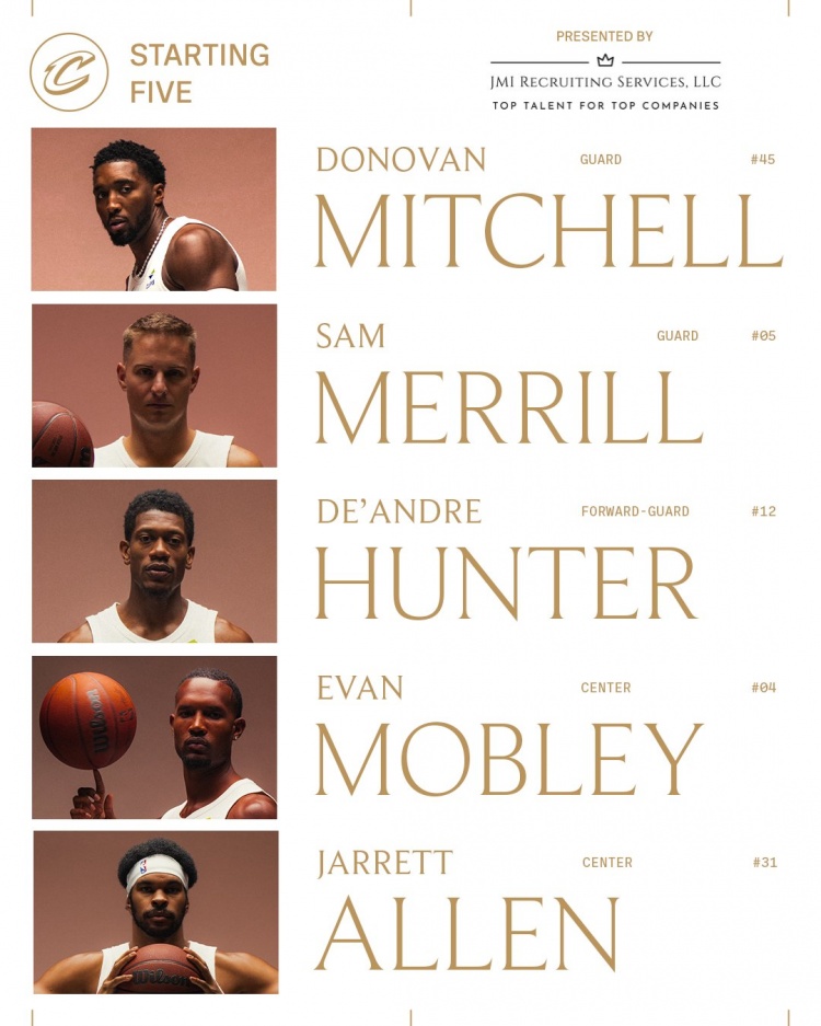 骑士首发出炉:米切尔、梅里尔、亨特、莫布里、阿伦。