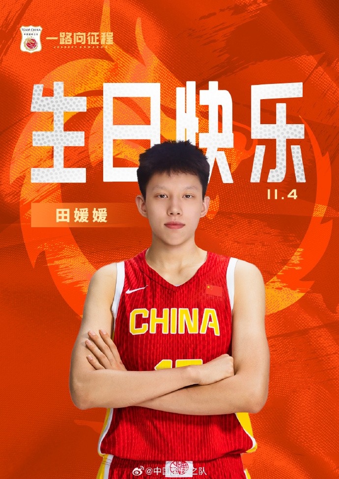 “突破犀利,串联灵动,攻防利刃,潜力无限。祝田媛媛生日快乐!新的一岁,淬炼锋芒,履践致远! ”中国篮球之队官博在图片旁边写道。